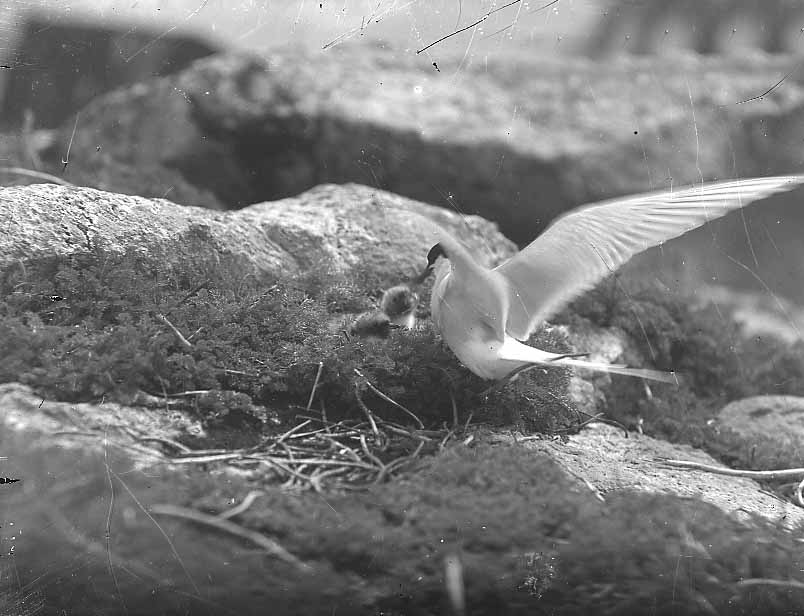 An Arctic Tern feeding young, date unknown.