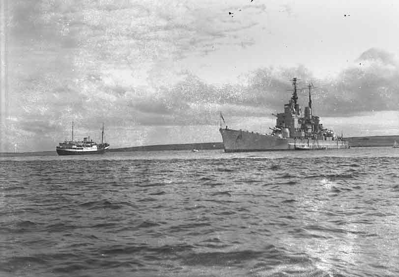 HMS Vanguard, then Britain's largest Battleship, and the Home Fleet in Scapa Flow, June 1954. See Orcadian 24/6/1954, page 5.