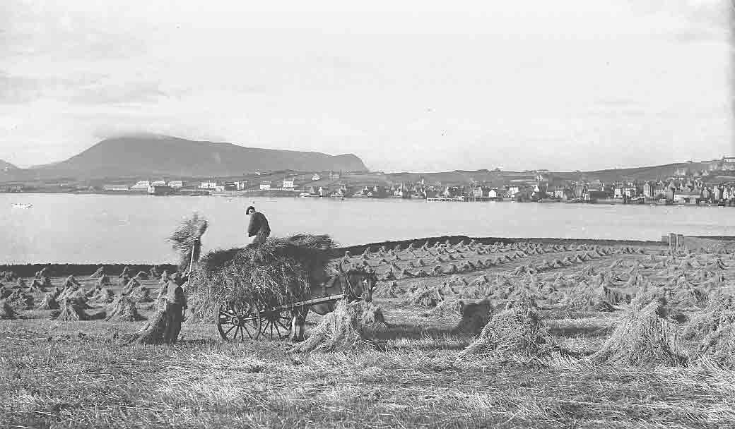 Gathering the crop with a horse drawn cart, Garson, Stromness, date unknown.