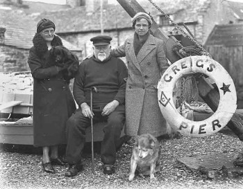 Robert Greig, with his wife on the left, Stromness. He was Coxswain of the Stromness Lifeboat 'Good Shepherd' and received a silver medal for gallant service on 7/12/1907 during the rescue of three crewmen from the Trawler 'Shakespeare'.