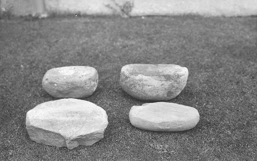 Mortars and Quern stones from Midhowe Broch, Rousay, c.1930s.