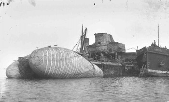 Salvage work on the scuttled German High Seas Fleet in Scapa Flow, 1923.