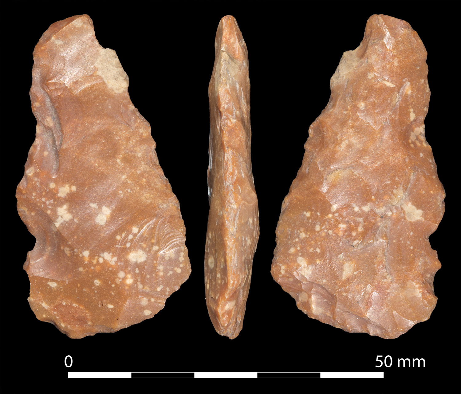 10 trays, containing various flint and stone implements. Tray A - 17 specimens, Tray B- 15 specimens, Tray C - 15 specimens, Tray D - 17 specimens, Tray E - 7 specimens, Tray F - 15 specimens, Tray G - 10 specimens, Tray H - 15 specimens, Tray I - 18 specimens, Tray J - 8 specimens. Mounted in Handkerchiefs boxes. In box I, 3 loose. In box F, 3 loose. In box A, 1 loose. In box B, 1 loose. In box D, 1 loose. Robert Rendall collection