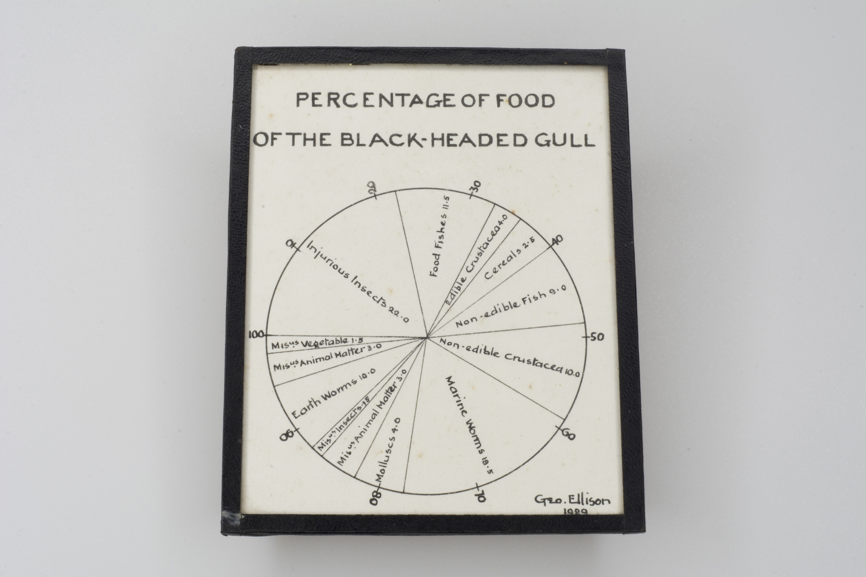 George Ellison collection. Graphic panels: 'Percentage of food of the black-headed gull', framed.