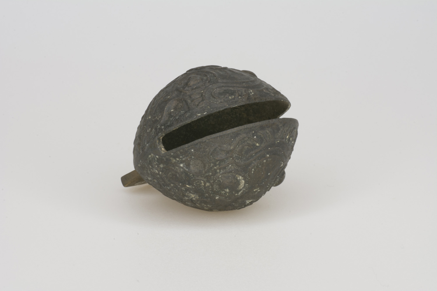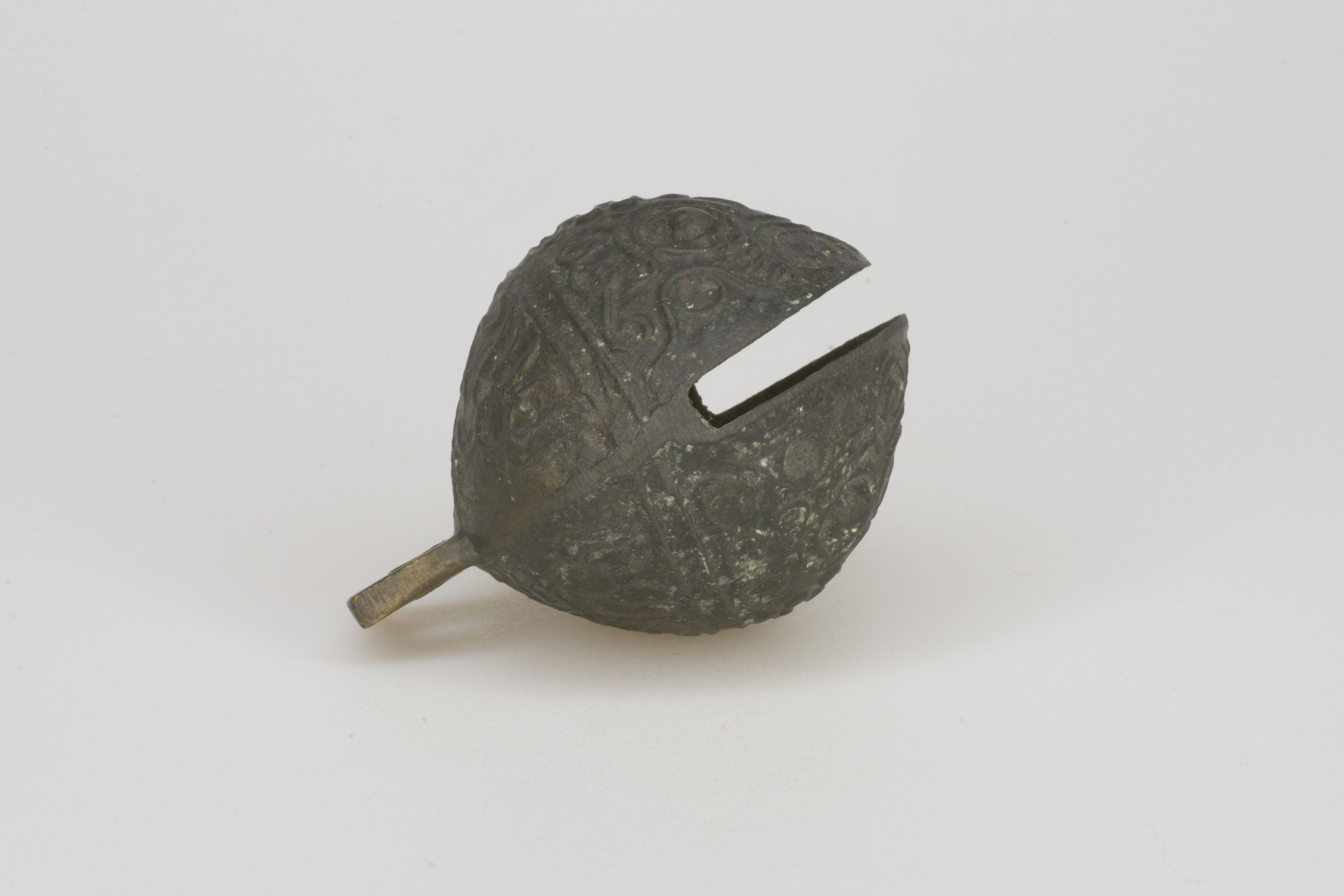 Cast bronze bell with ornate decoration.