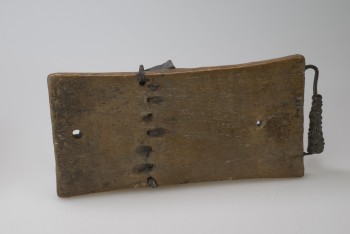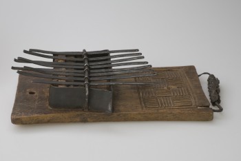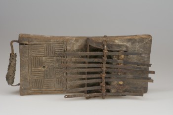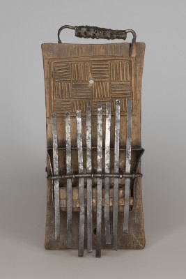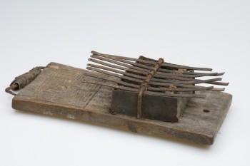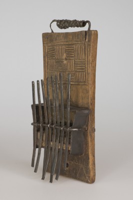 Original accession register entry: Zanza or portable piano, taken off the body of a dead chief killed in a bush fight on the Gambia River, by Henry Salter one of the boat's crew of H.M.S. "Arrogant" (Commander Edmonton) 1859-60.