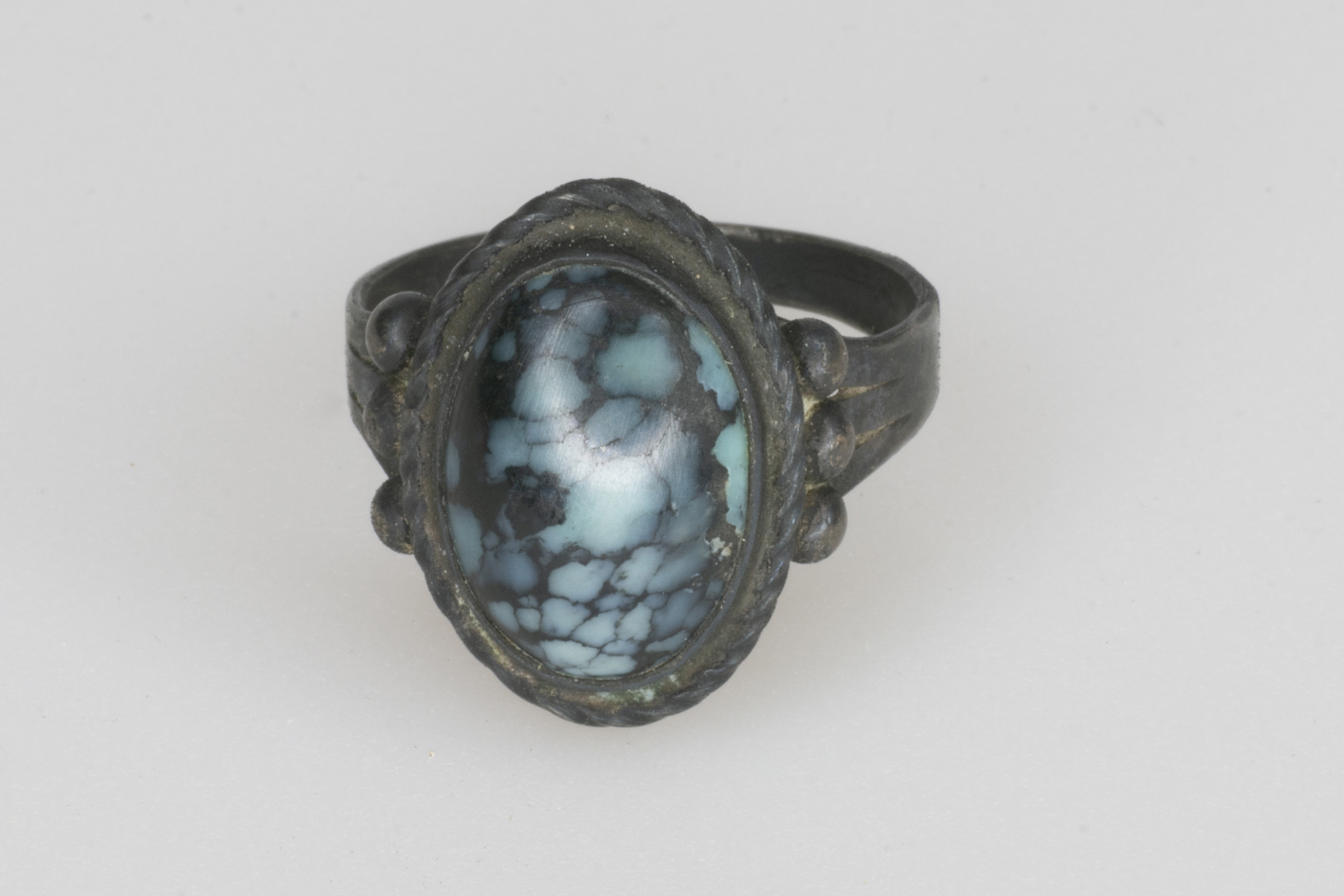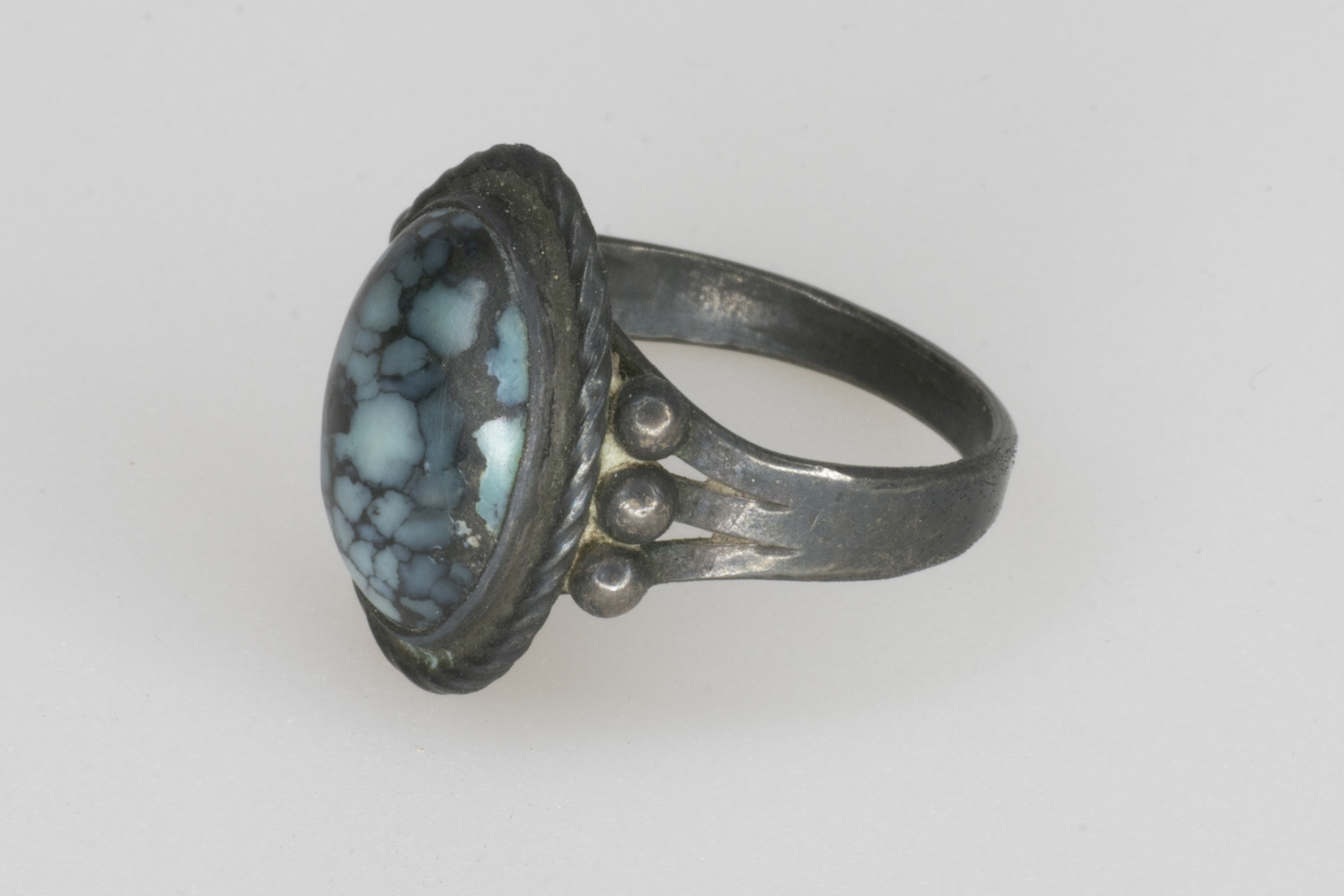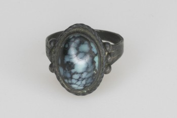 Silver finger ring with 1 turquoise stones. Thought to be Navajo.