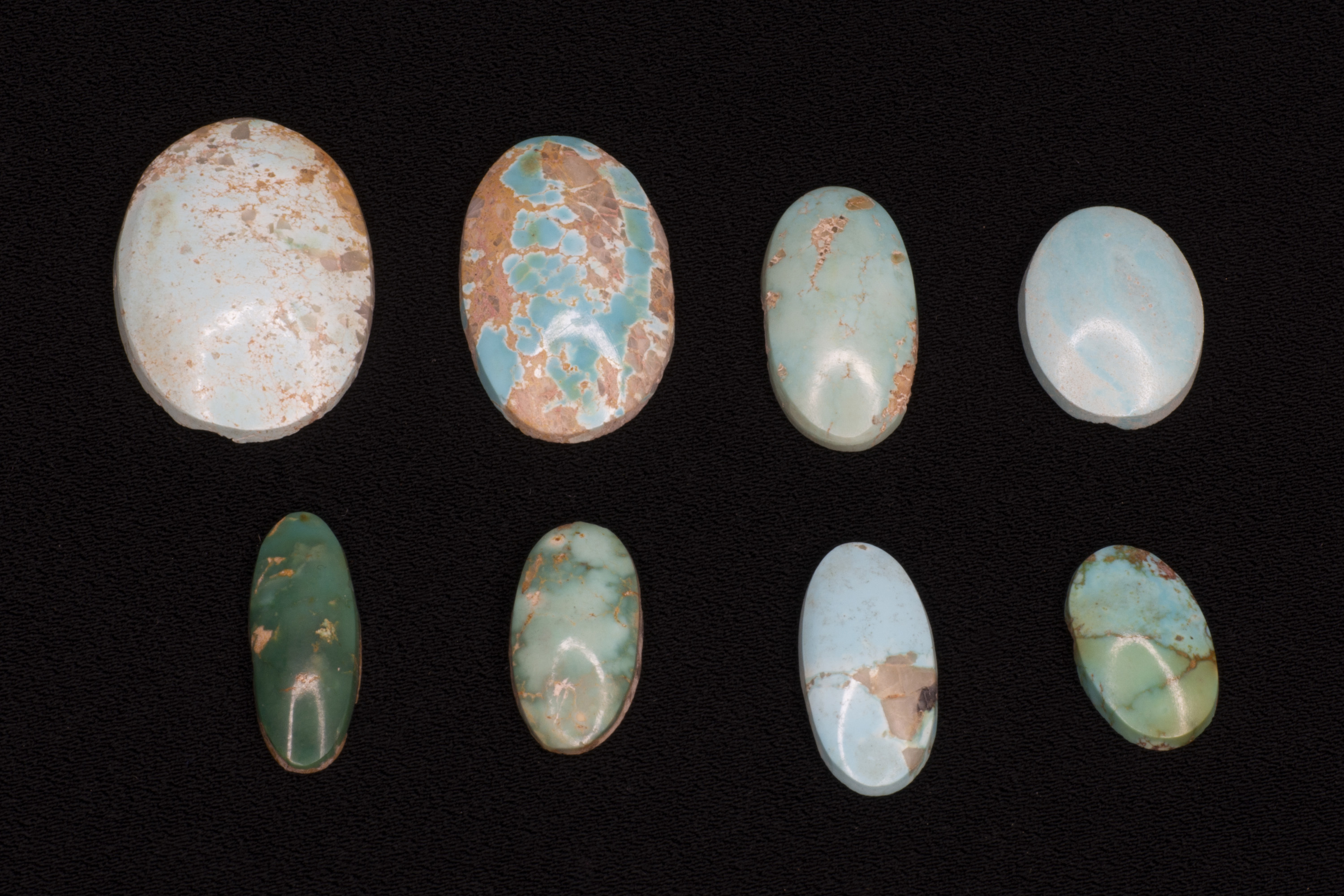 Eight pieces of polished turquoise.