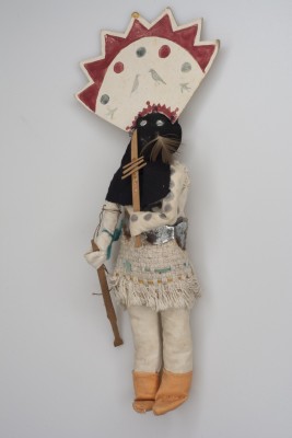 Rag doll male, warrior or god with a half star headpiece and a black hood.