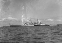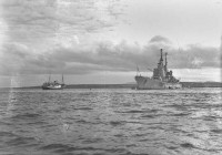 British Navy Frigate HMS Largo Bay visiting Stromness during Shopping Week, July 1952. See Orcadian 24/7/1952, page 3.