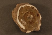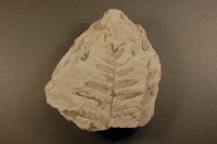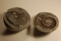 Two items, [1] with fossil standing out from break in rock, [2] with recess.