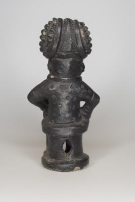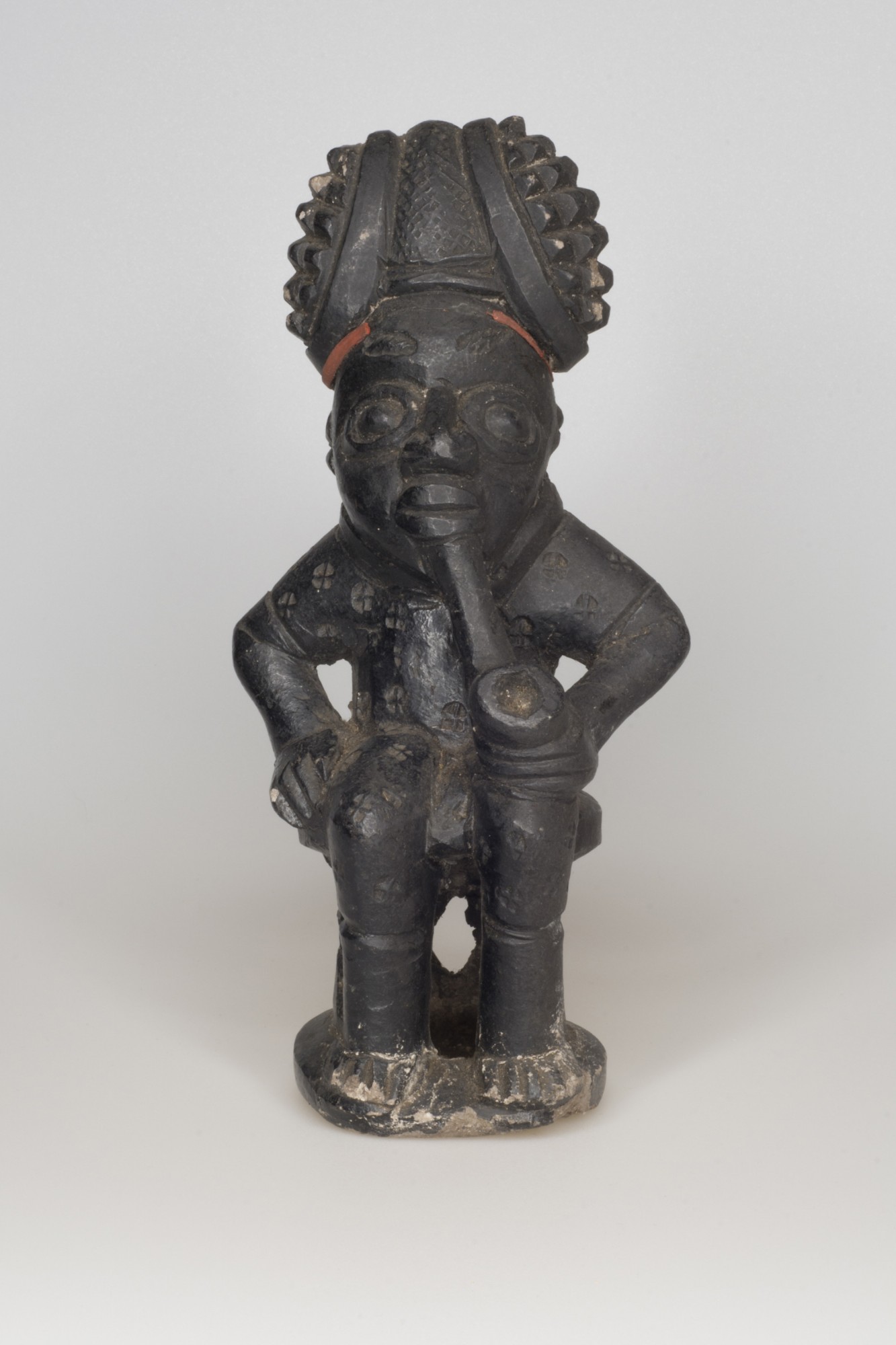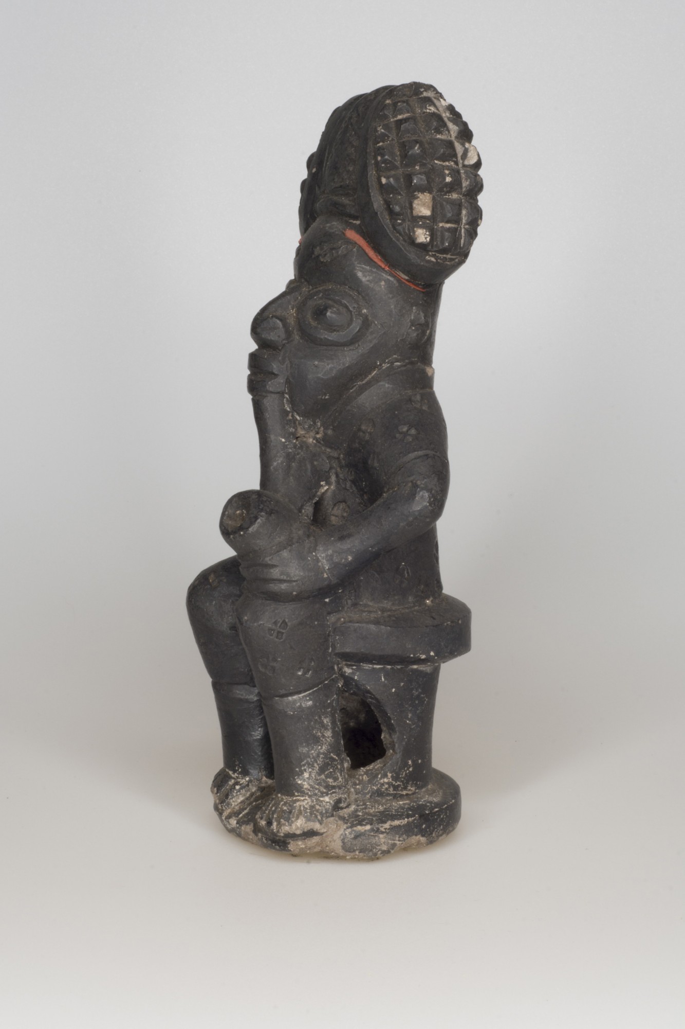 Pottery figure, seated, with pipe. Cameroon, possibly Barnum people.