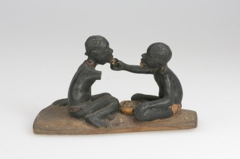 Thorn carving depicting two boys feeding each other. Onitsha, Nigeria. Inscription on back ‘A. ORISAOIPE LACUS’