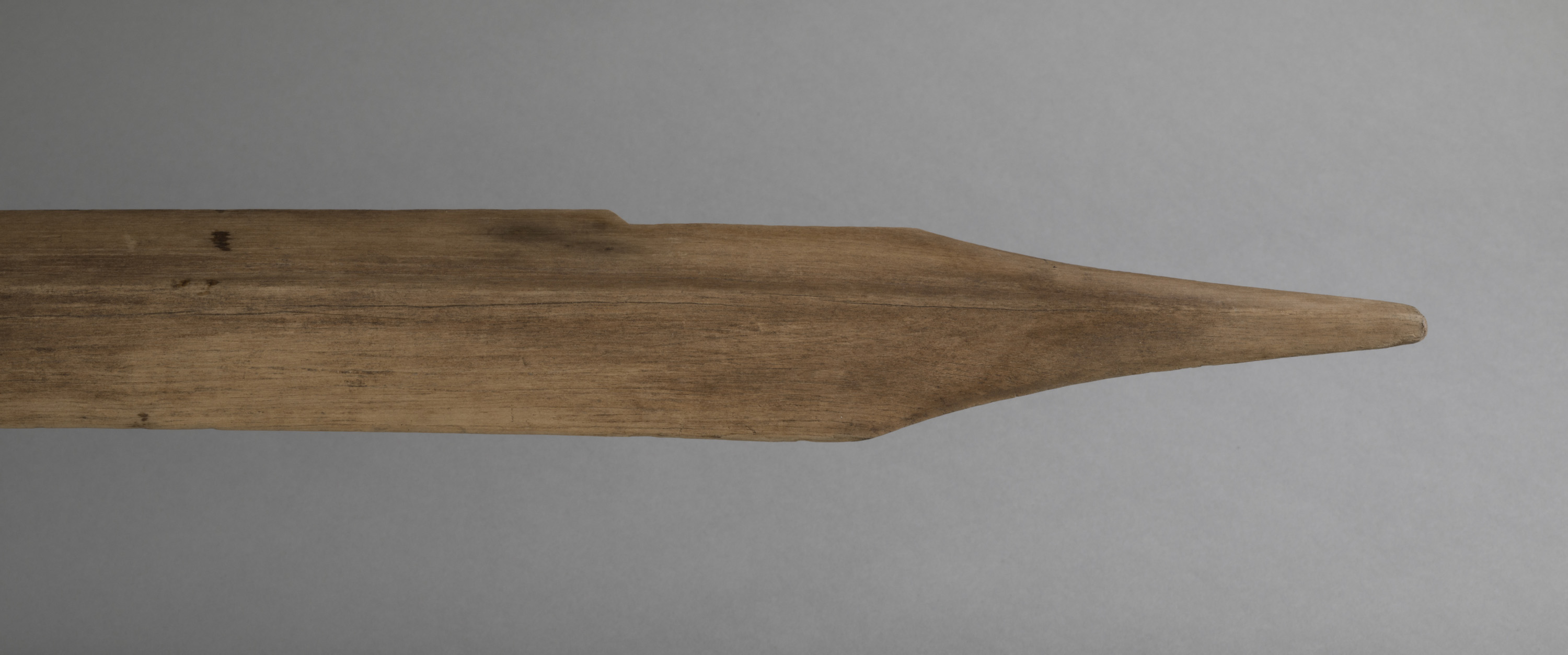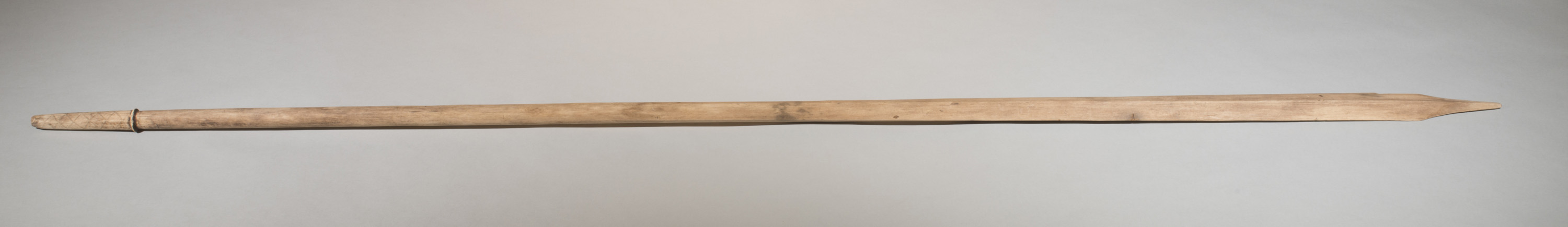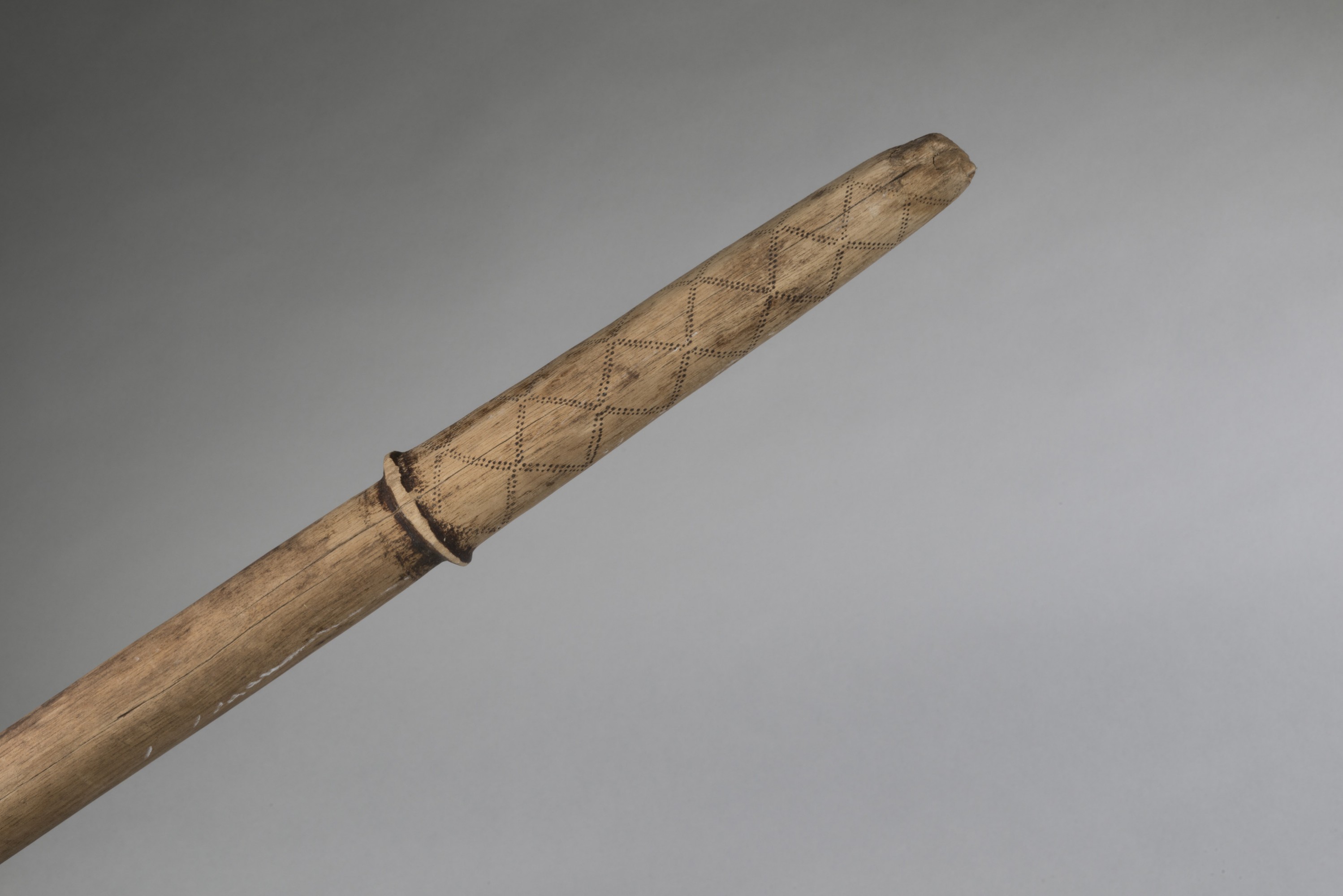 Staff from Niue, South Pacific. Slightly flaring head, pale wood. Bottom with collar under which there are zig zag dotted marks.