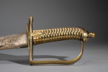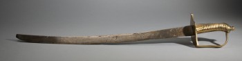 Naval cutlass with brass ornamental hilt and steel blade. It belonged to George Stewart of Massater who sailed as midshipman on the HMS Bounty expedition of 1787.
