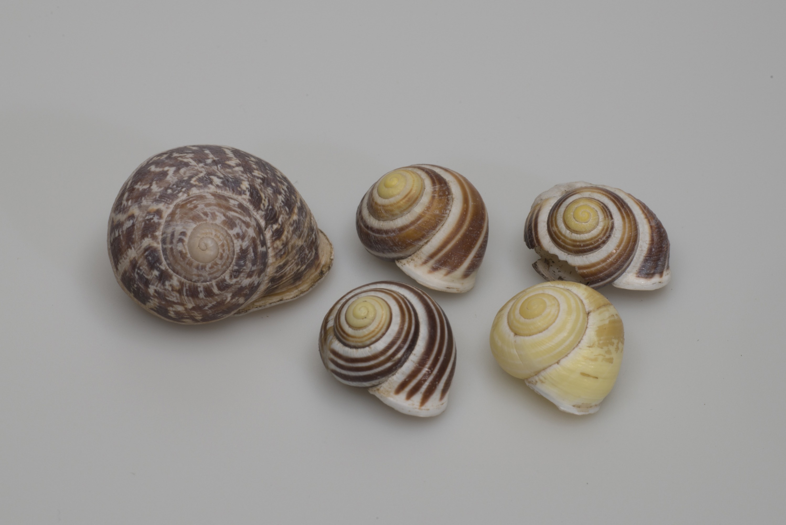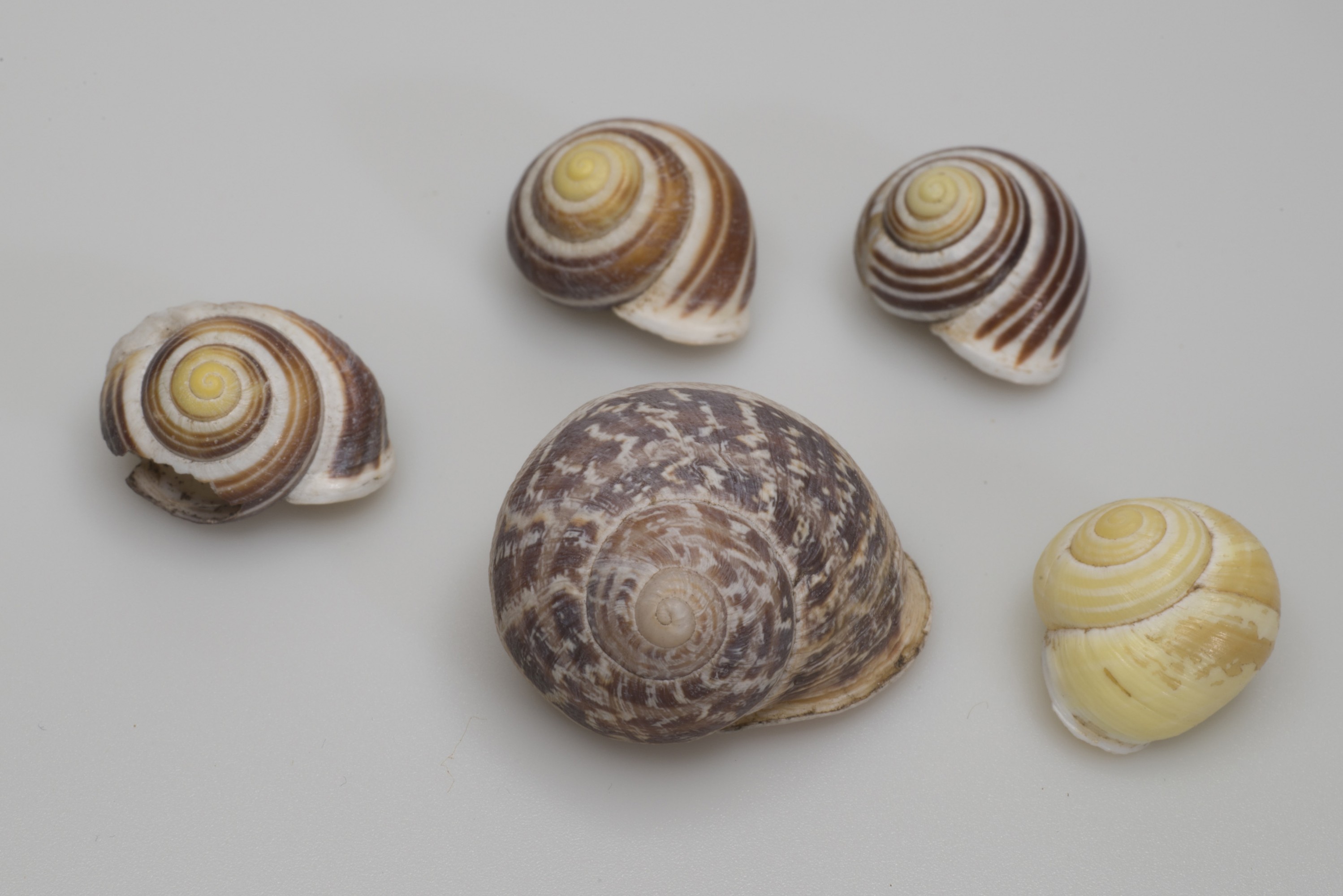 Common or Garden Snail: Helix aspersa. Muller. 5 shells.