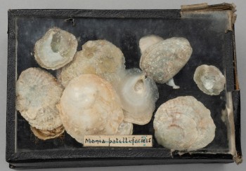 Class: Bivalvia. 16 specimens. 3 specimens with both top and bottom valves still connected at the hinge. 12 top valves and 1 bottom valve. The top valve is fairly delicate but significantly sturdier than the bottom valve which is incredibly thin, translucent and fragile. Off grey in colour with a rough surface of semi visible ridges radiating from the hinge. Can be found in the intertidal zone and the sublittoral attached to rocks.