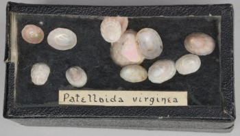 Class: Gastropoda. 12 specimens. Small, asymmetrically conical. Ranging in colour from whitish yellow, to the pale pink of the striped bands which are still visible on a number of the specimens. Can be found at the low tide line and in rock pools. Also round on smooth rocks close to its food source, Lithothamnion algae which is also pink or purple in colour.