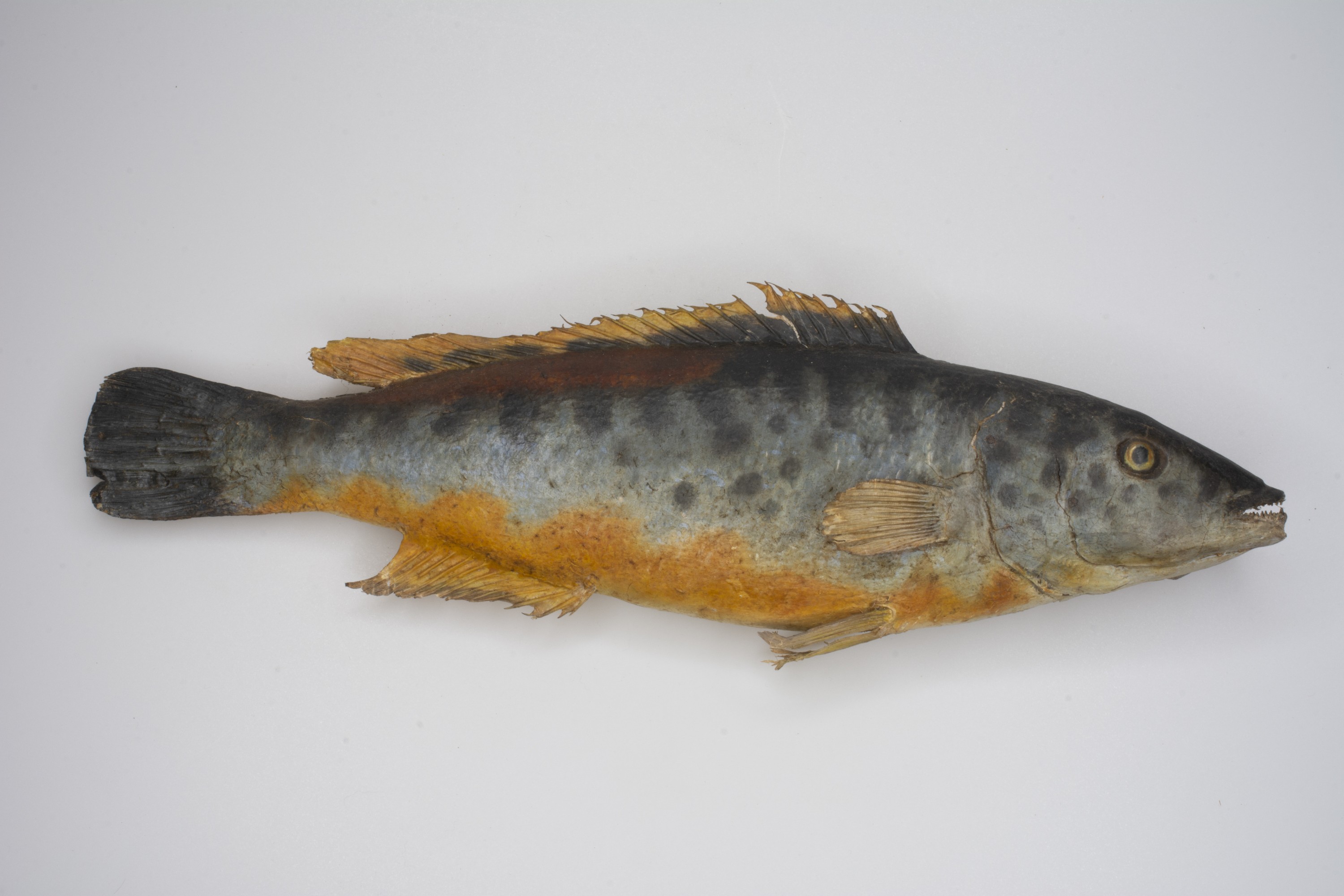 Cuckoo Wrasse: Labrus Mixtus (male). stuffed fish.