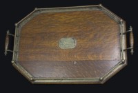 Presentation tray: octagonal oak tray with siverplated rail and plaque 'St Andrews Ambulence Assoc. Presented to Dr F. L. Duncan by the Stromness Class 1907'. (Grandfather of donor).