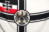 German Imperial ensign from SMS Hindenburg. Iron cross in top left corner and imperial eagle in centre.