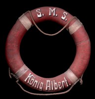 Ships bell, from the 'SMS Freidrich dan Grosse'. Black cast iron broken on the top with part of the cast missing.