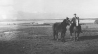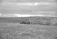 Copy negative showing a ploughing match at Bu', Burray, c.1928. On the left is Gilbert Laird of Quoy and on the right is John Wylie.