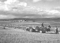 Harvesting with a Tractor and Binder, Voy, Sandwick.Stenness Loch is in the background. Date unknown.