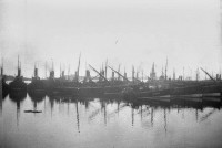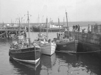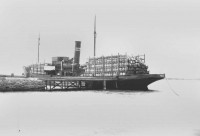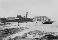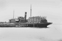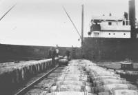 S.S. Dalalfven loading herring barrels at Sinclair & Buchan's pier, Papa Stronsay, c.1938.