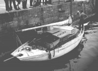 The sailing cutter 'Maid Nellie' with skipper David Regan and his two crewmen, Leslie Shephard and Jon Field, 1959. They intended to sail the North Atlantic by the old Viking route.