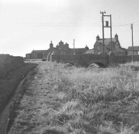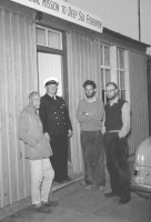 Crew of the sailing cutter 'Maid Nellie' outside the Deep Sea Fishermen's Mission, 1959: L-R: Leslie Shephard, Harbour Master, Jon Field & David Regan.
