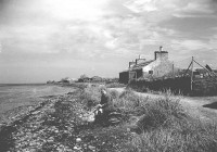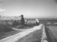 A view of Pierowall village, Westray, c.1950s. Noltland Castle can be seen in the distance on the left.