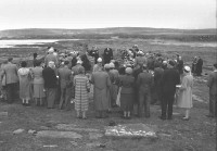Dedication of the ruins of Earl Thorfinn's Great Christ Church, aka Peter Kirk, on the Brough of Birsay by the Rev. Rose, c.1950s. .