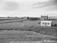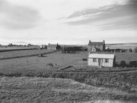 A view in Harray, c.1950s. The two storey house on the right is Kingshouse and Holodyke an be seen in the distance, left of centre.
