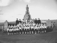 St. Margaret's Hope Girl Guides at the South Ronaldsay War Memorial, 1955.