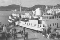 M.V. St. Ola making for Scrabster, seen from Stromness Golf Course, with the Hoy hills in the background, c. 1955.