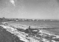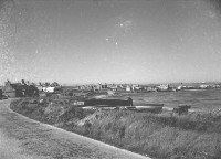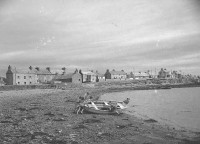 Pierowall village, Westray, c.1950s. Noltland Castle can be seen in the distance on the left.