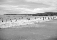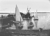 Sailing dinghies at Longhope for the regatta, 28th July 1955, with the Steamer 'Orcadia' in the background. Article: Orcadian 4/8/1955, page 6.
