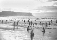Workers for an english firm collecting 'tangles' at Warbeth, near Stromness. They are stacking them to dry before shipment South, 1956. See Orcadian 1/11/02, page 3.