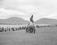 Harvesting with a Tractor and Binder, Voy, Sandwick.Stenness Loch is in the background. Date unknown.