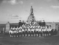 St. Margaret's Hope Girl Guides at the South Ronaldsay War Memorial, 1955.