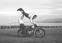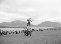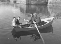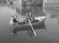 Boxers Dick McTaggart (Olympic Lightweight champion) and Danny Lee (British Flyweight champion) at the 1960 Stromness Shopping Week, with two promising young boxers from the Joe Aitchison Training Sch
