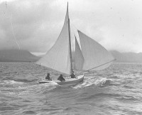 J.W. Mackay, boat builder, and assistants at work in his shed, c.1959. The shed used to be part of Thornley Binders premises in Stromness. See Orcadian 12/3/1959, page 3.