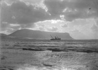 Stromness Lifeboat going out to the Grimsby trawler 'Carmania II' ashore on the Kirk Rocks, Hoy Sound, on 14th February 1929.
