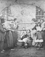 Copy photograph depicting the traditional Christmas custom of weighing children on a Pundlar, date unknown.