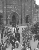 Church officials leaving St. Magnus Cathedral, Kirkwall, during the celebrations for it's octo-centenary, on 29th July 1937.