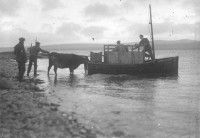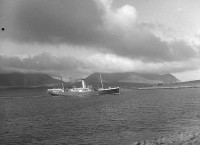 M.V. St. Ola approaching Stromness, with Hoy High Lighthouse, Graemsay, in the background, c.1950s.