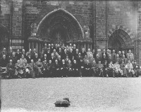 A large group outside St. Magnus Cathedral, Kirkwall, at the time of the octo-centenary celebrations, 1937.