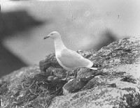 A motor launch sailing past the Old Man of Hoy, date unknown.