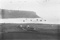 Fisher girls cleaning fish at Stromness Pier, date unknown. Plate broken.